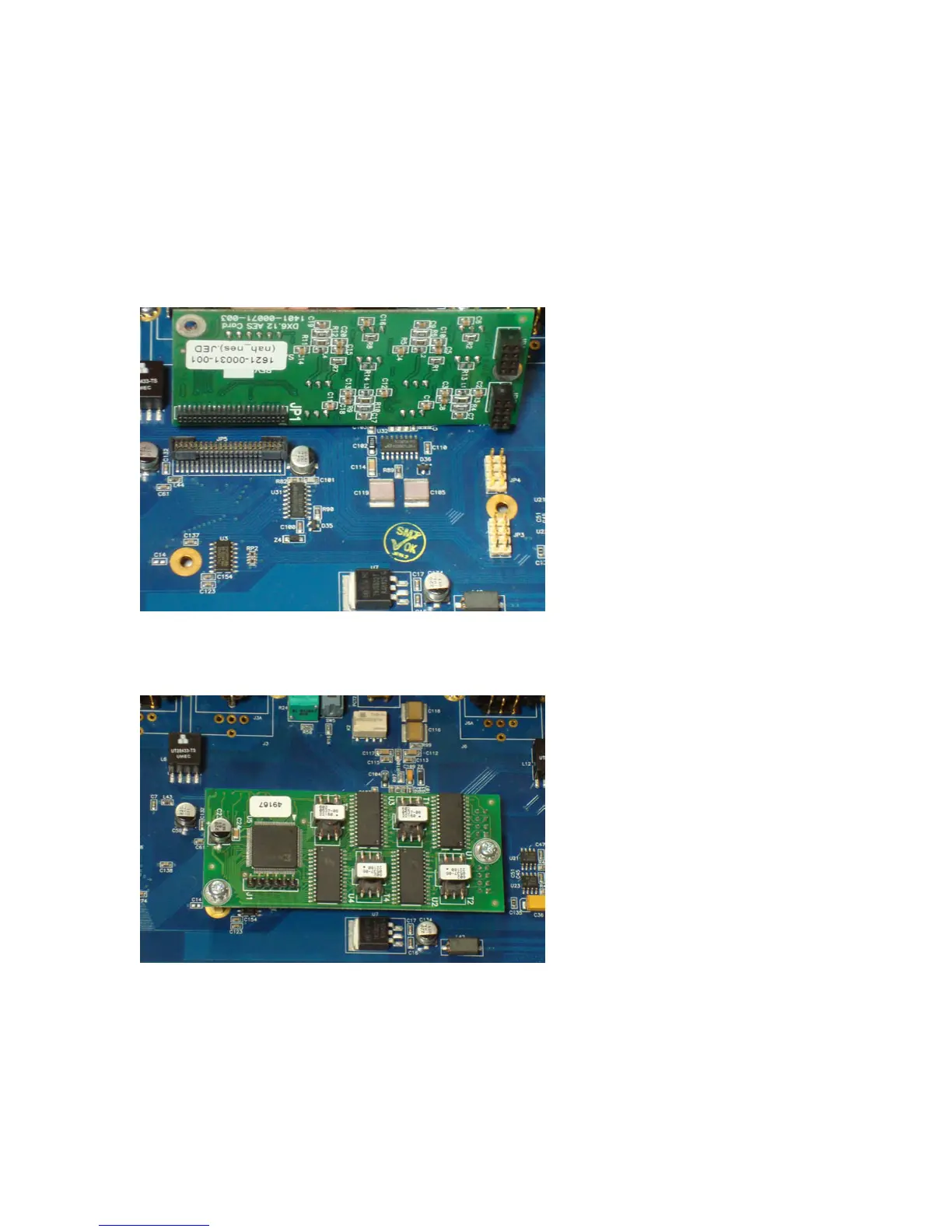 5. Align connectors JR2 and JR1 on the AES plug-in module with JP4 and JP3 on the