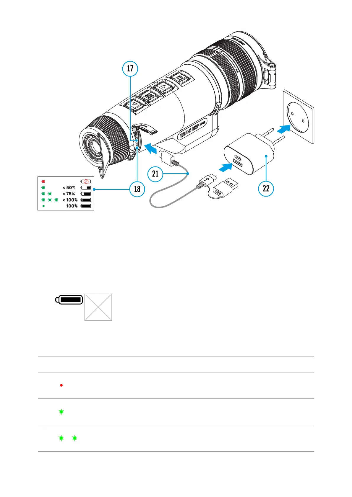 Connect the USB cable (21) to the USB Type-C connector (17) of the