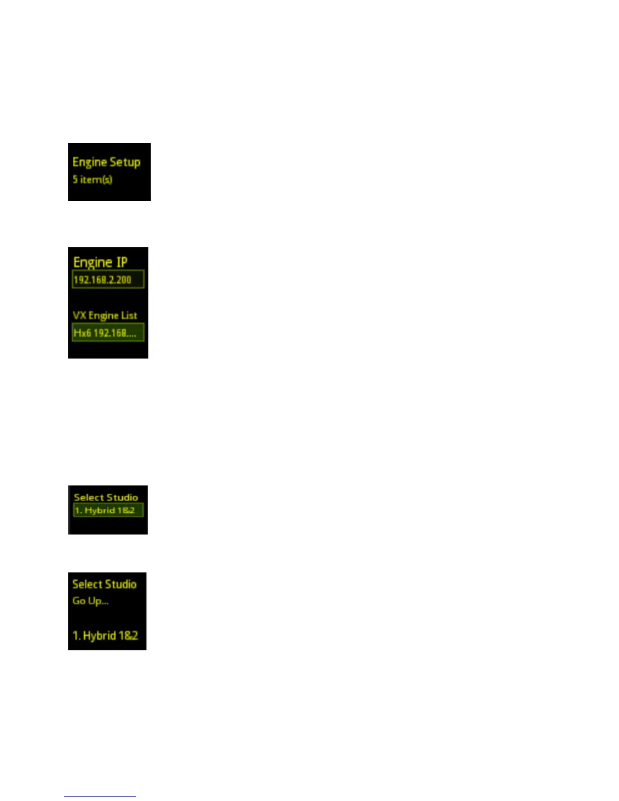 From the Engine Setup Menu, press the left line key next to Select Studio. Select the correct Studio from the Vx Engine or