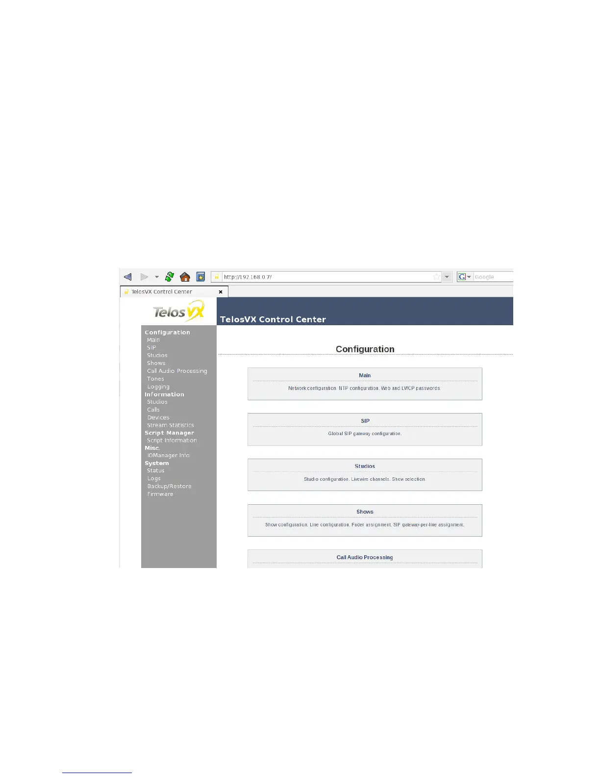 is connected to. Start a web browser and open a connection to the VX Engine by entering
