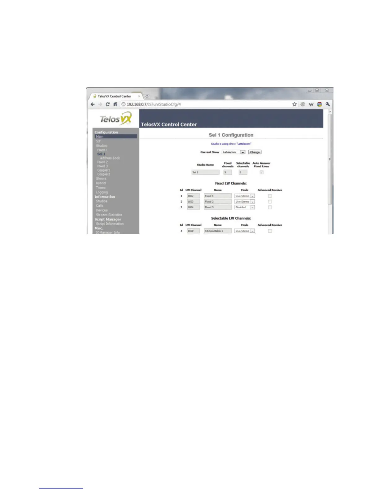 faders you want to devote to selectable and fixed lines and you assign the Livewire channel