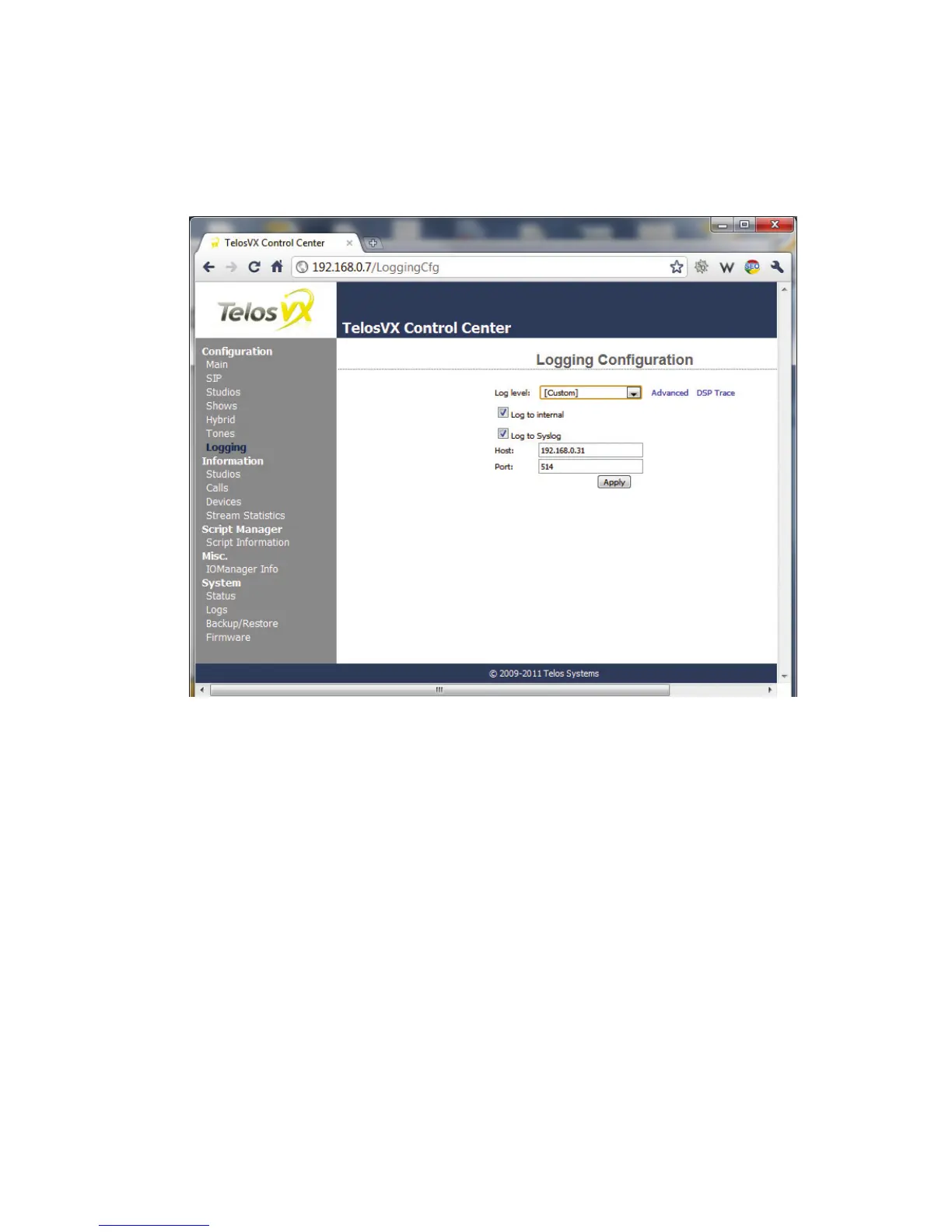 You can choose to store logs inside the VX or to an external PC on the network that is set up to