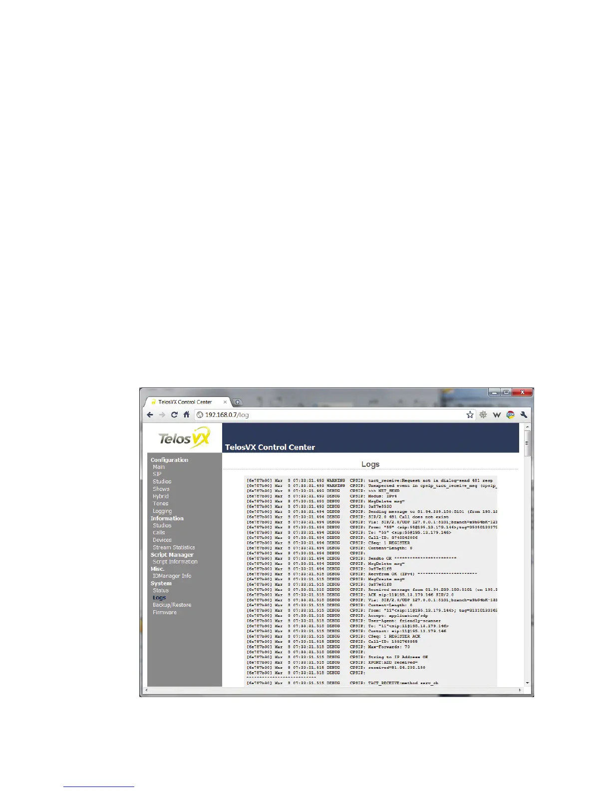 A typical setting for diagnosing SIP problems would be to set the log level to Debug (extended).