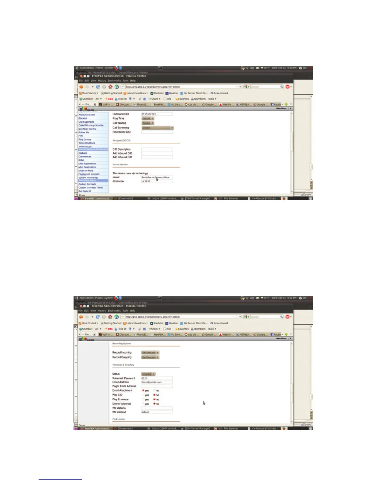 We see Recording Options and Voice Mail settings (You can record all calls or the extension
