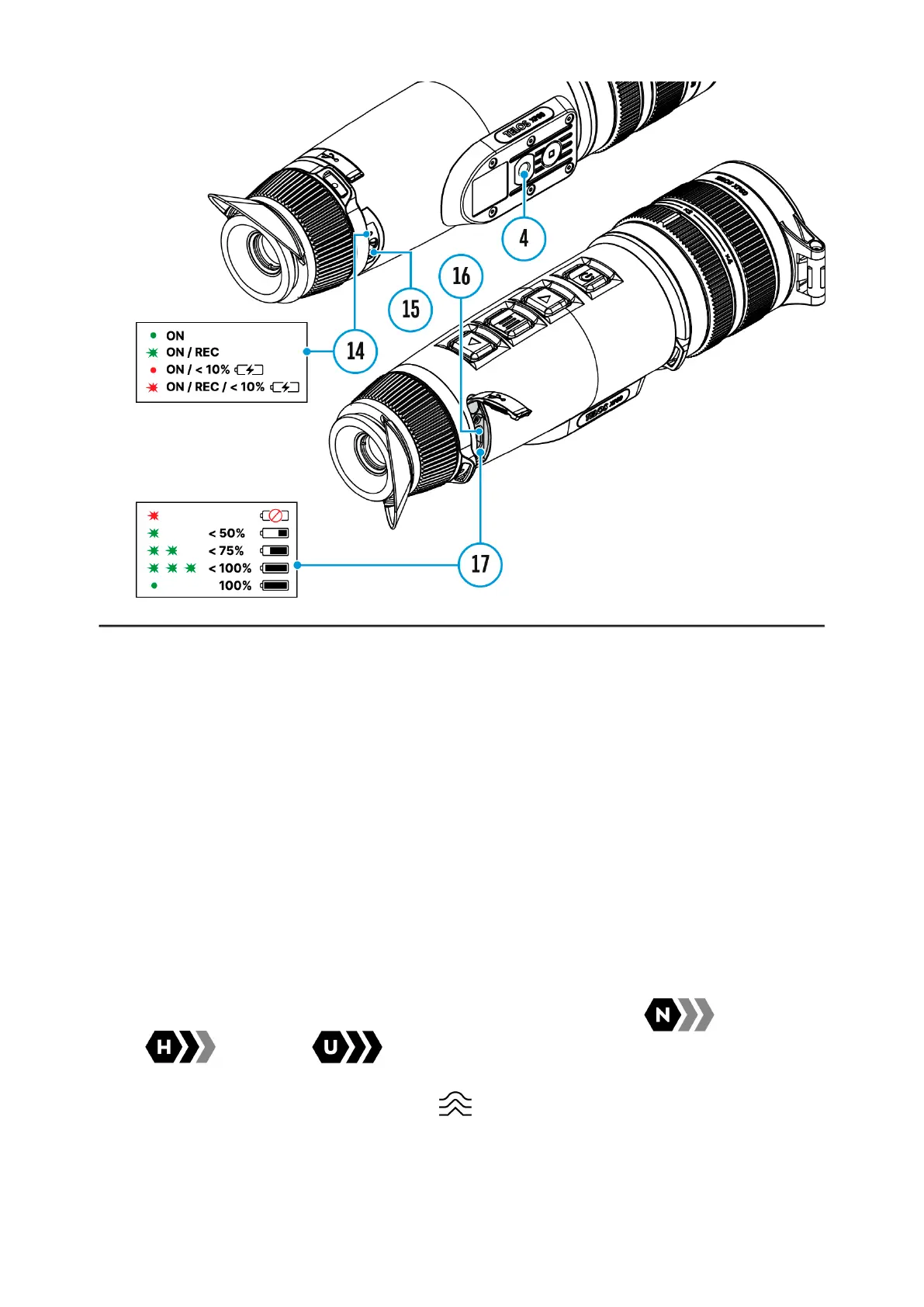 Adjust the eyepiece diopter ring (13) until the symbols in the display