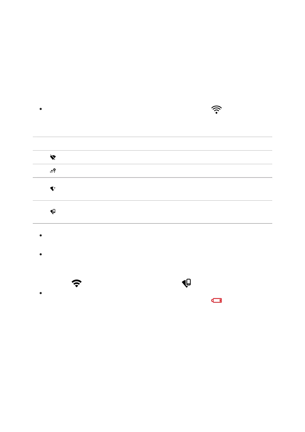 battery power for Wi-Fi. The battery icon will turn red and flash. To