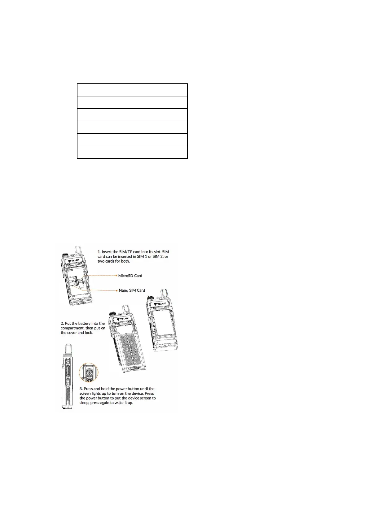 1. Insert the SIM/TF card into its slot. SIM card can be inserted in SIM 1 or SIM 2,
