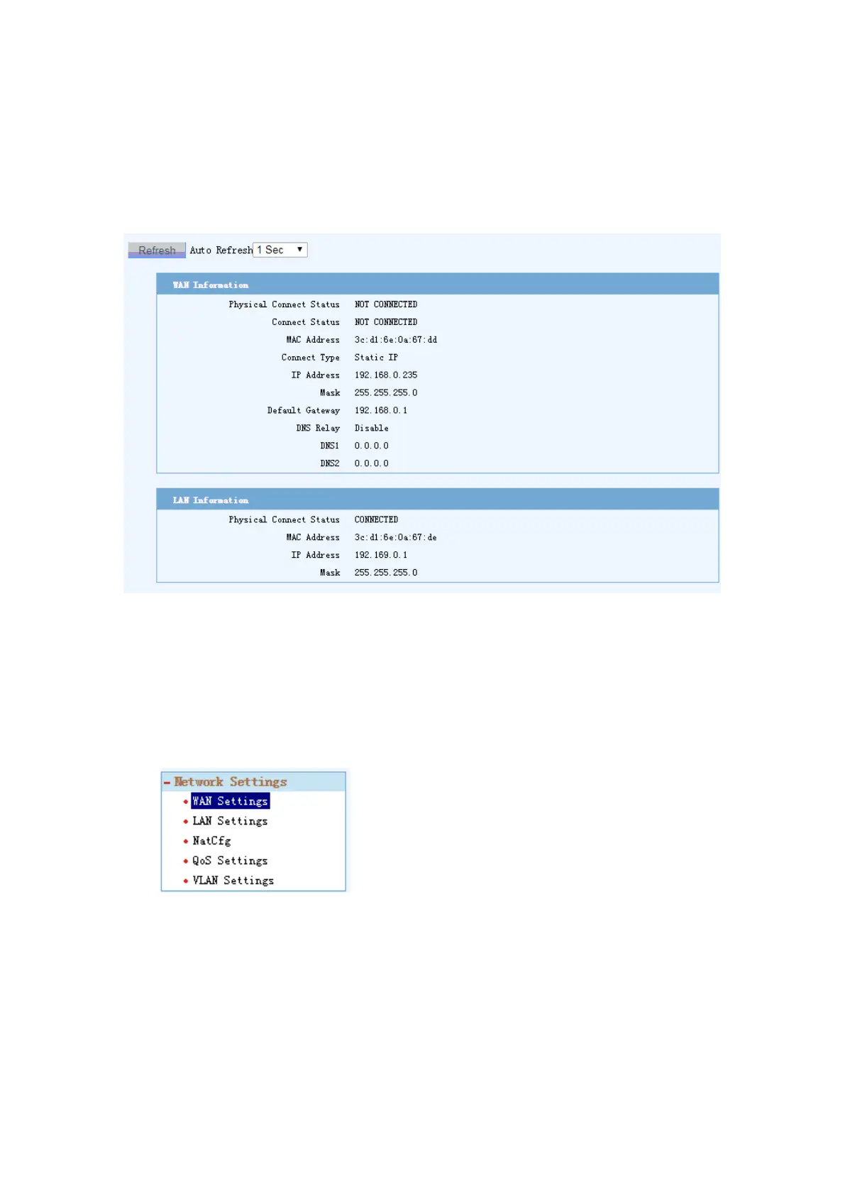 WAN Settings: It refers to the upward access network port;