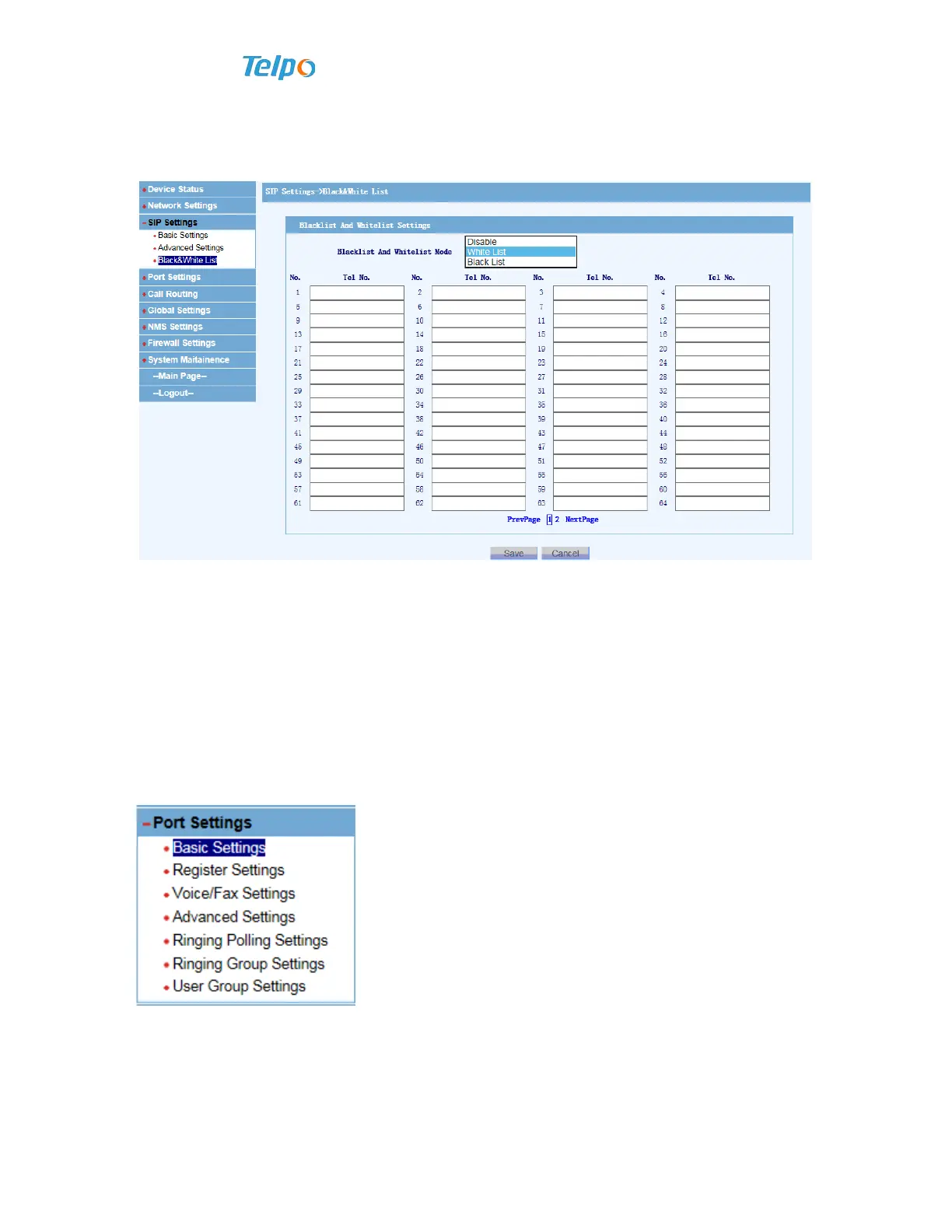 Telpo TP-64S - Port Settings Configuration