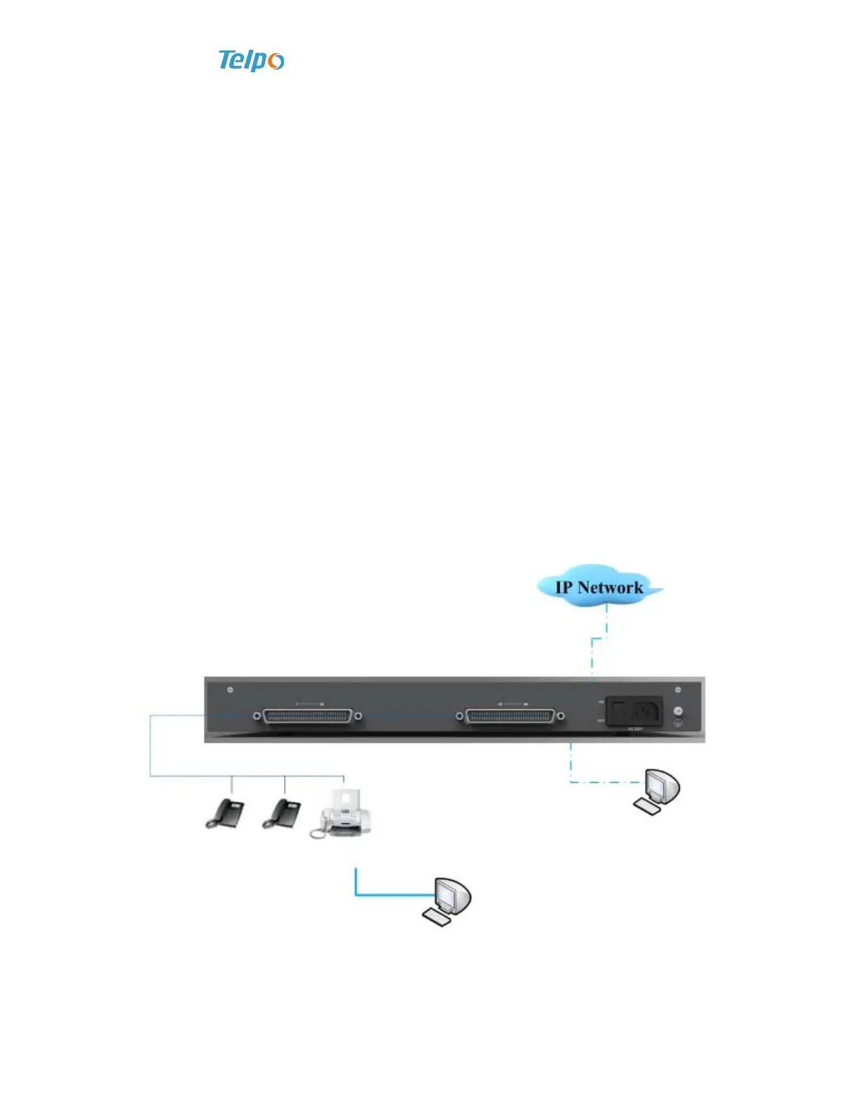 2.Link the upward network cable with Voice gateway’s WAN port;