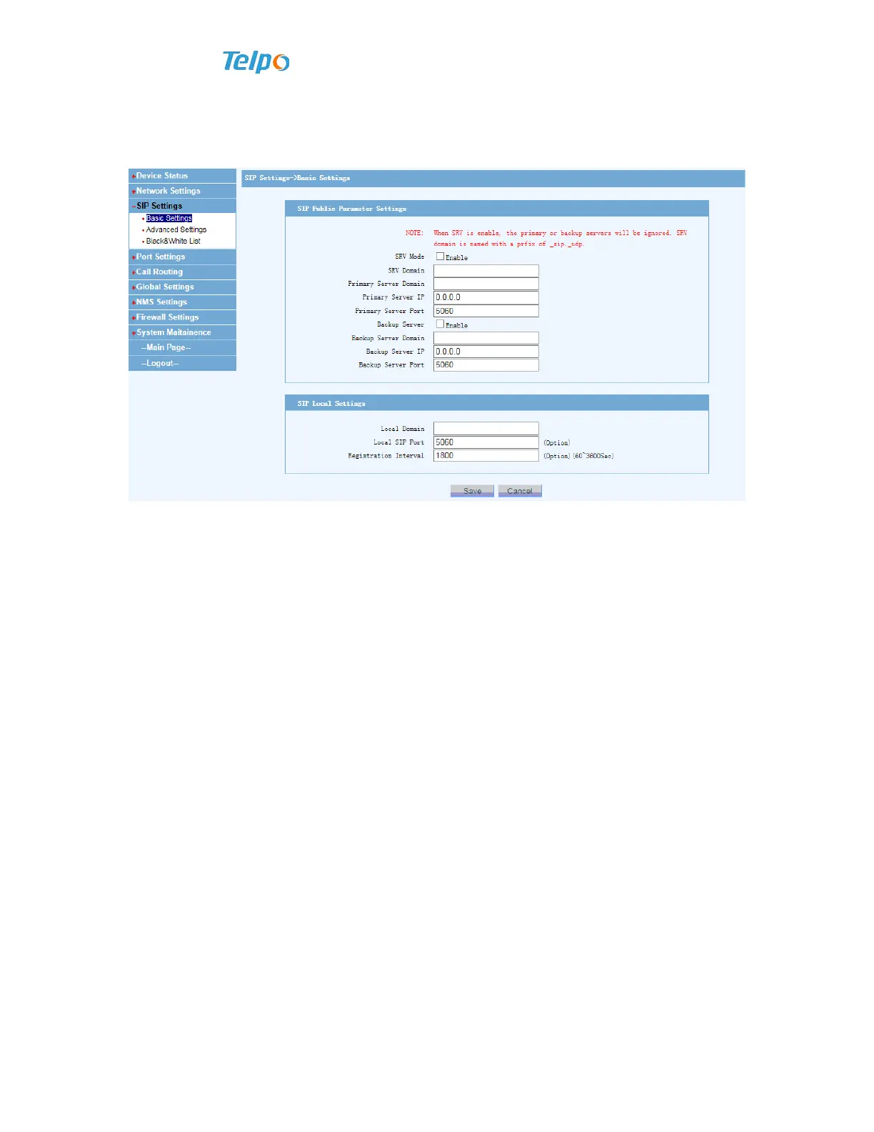 Click “SIP Settings Basic settings” that is in the left column, complete the main