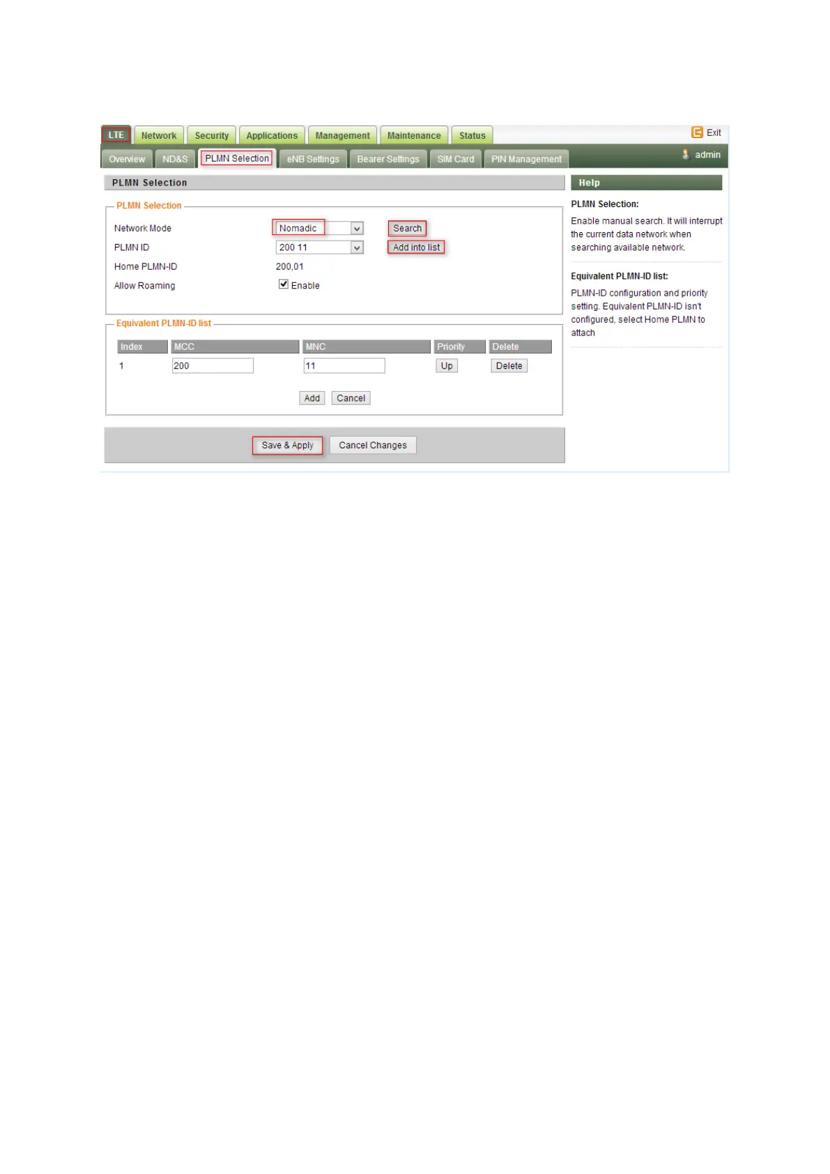 list>add the Earfcn and PCI—>Save & Apply