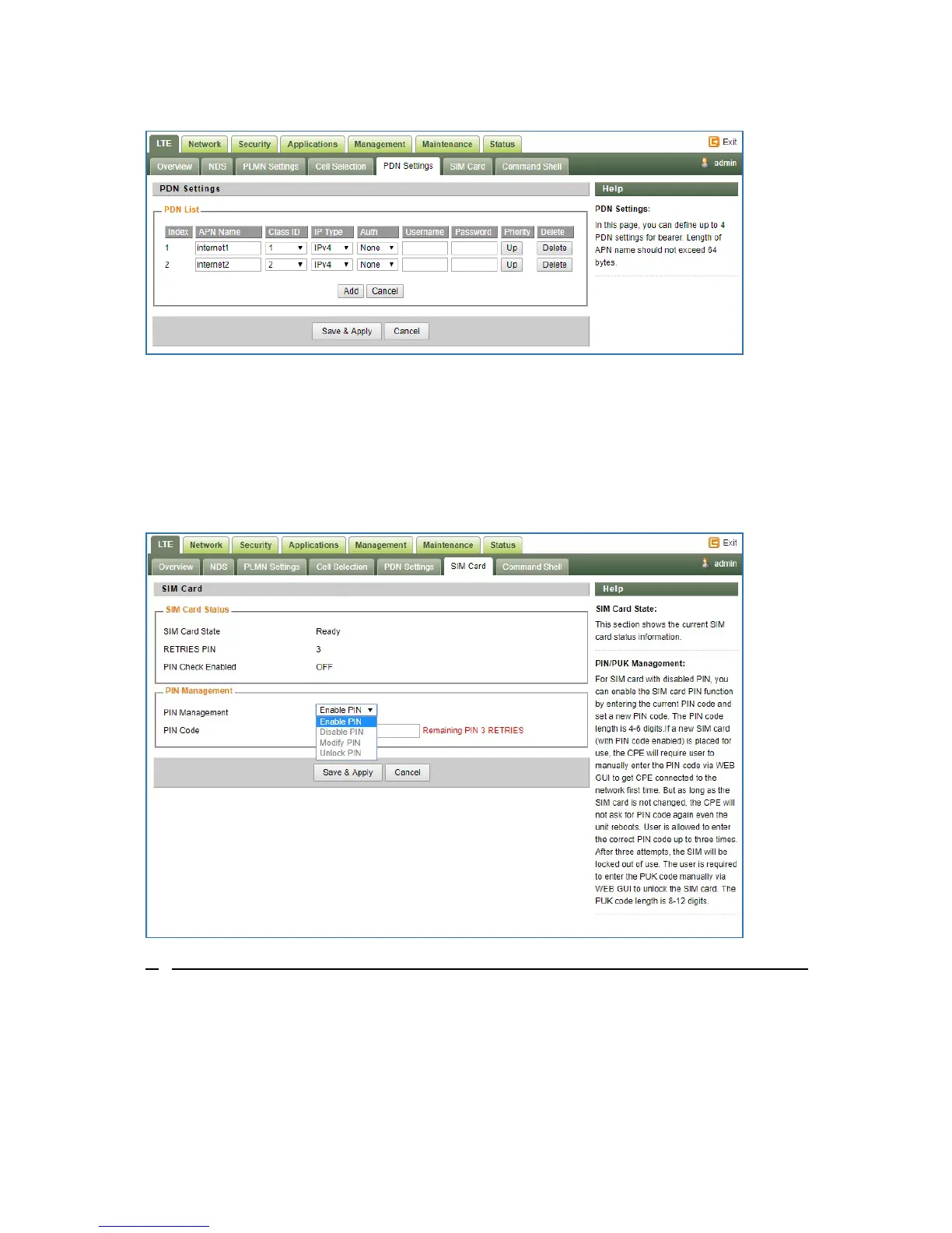 for SIM card. You disable or enable the SIM card PIN check on the CPE to bind the SIM card