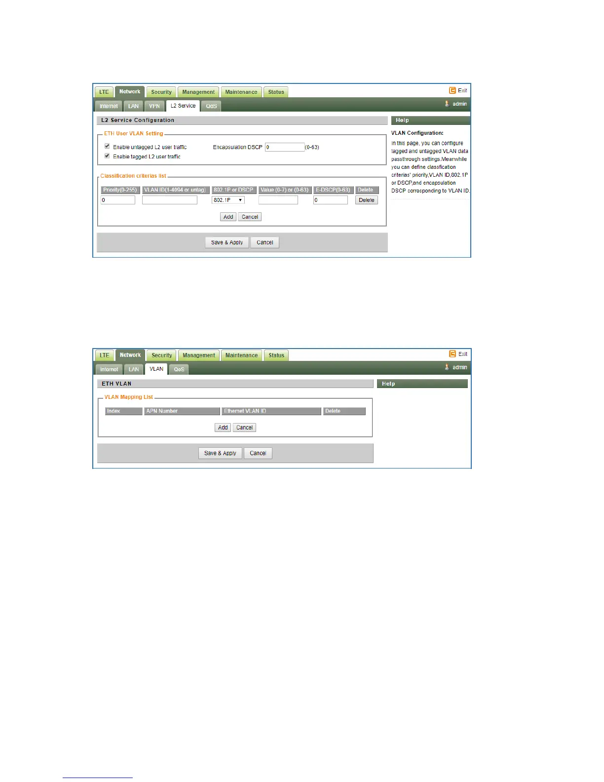 Under the L3 Bridge connection mode, the following VLAN setting can be configured. When