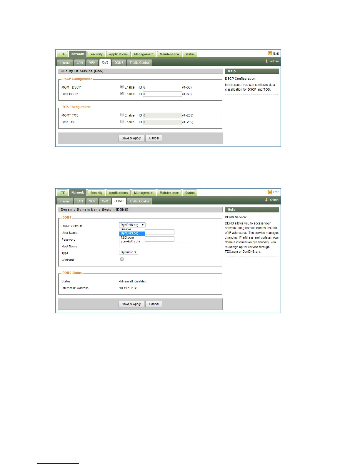 This configuration menu allows user to configure use of different DDNS service for router