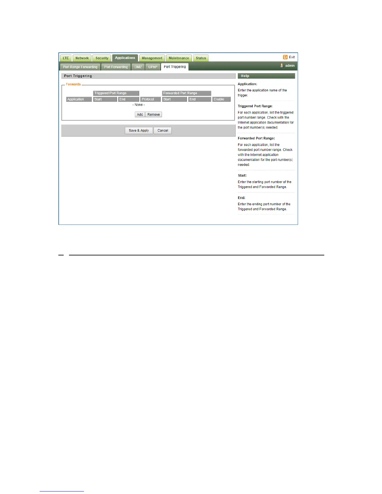 Telrad CPE8100 - Port Triggering Configuration