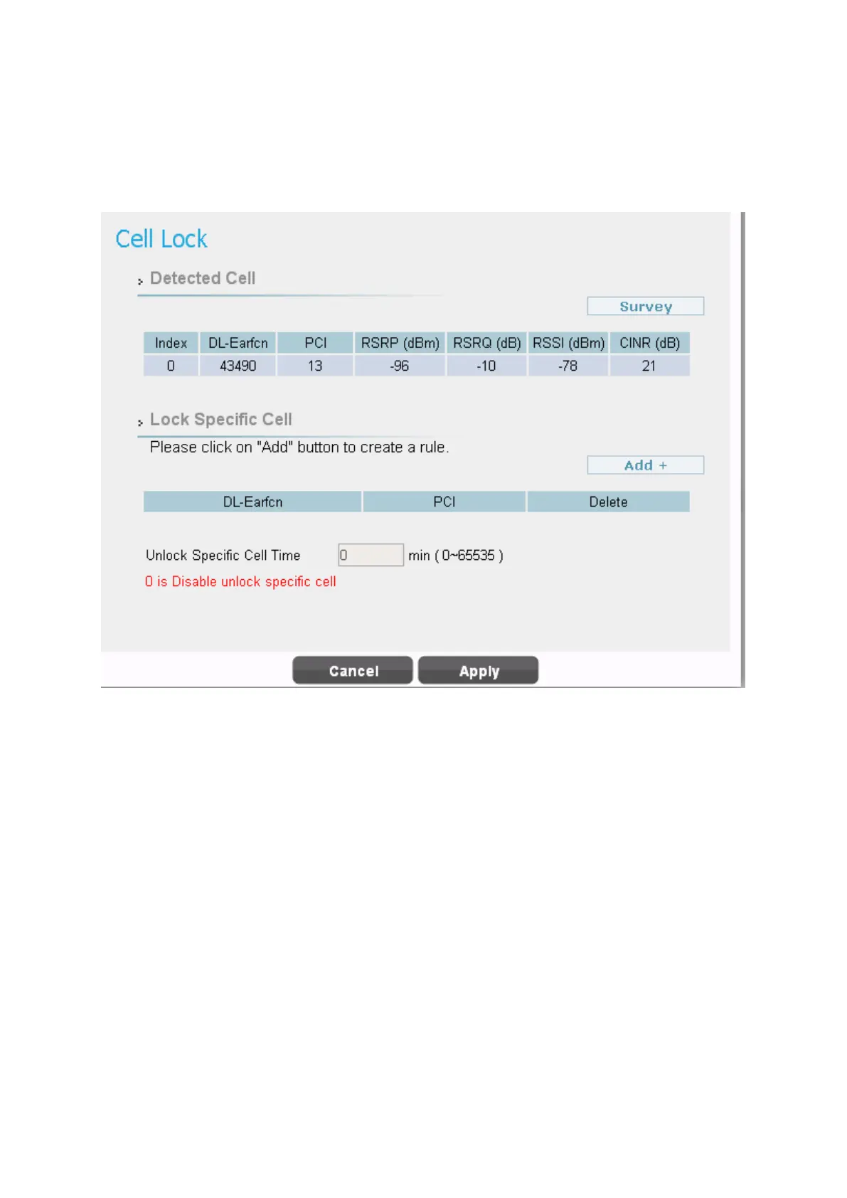 Cell Lock is use to lock CPE into specific Cell. CPE will only connect to specific cell that define