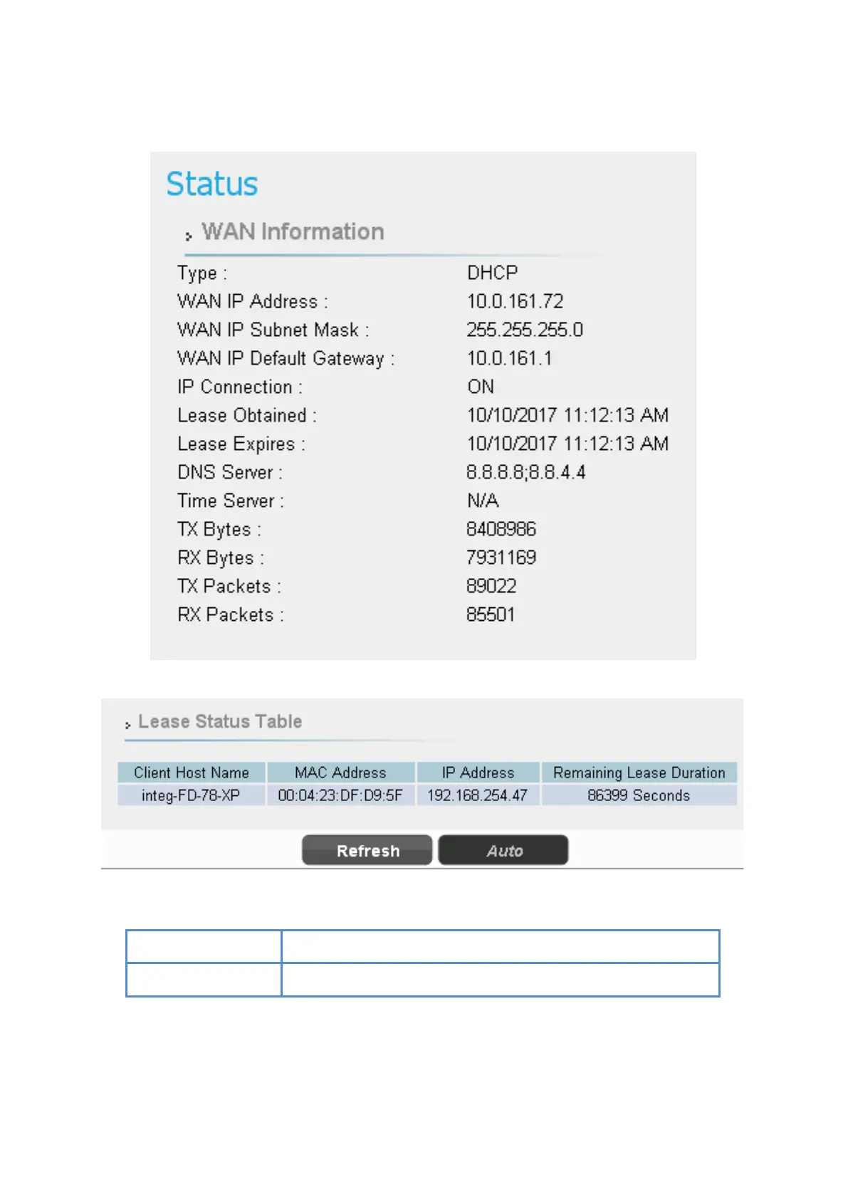 Lease Status Table: This section shows all clients who get IP from DHCP server in LTE CPE.