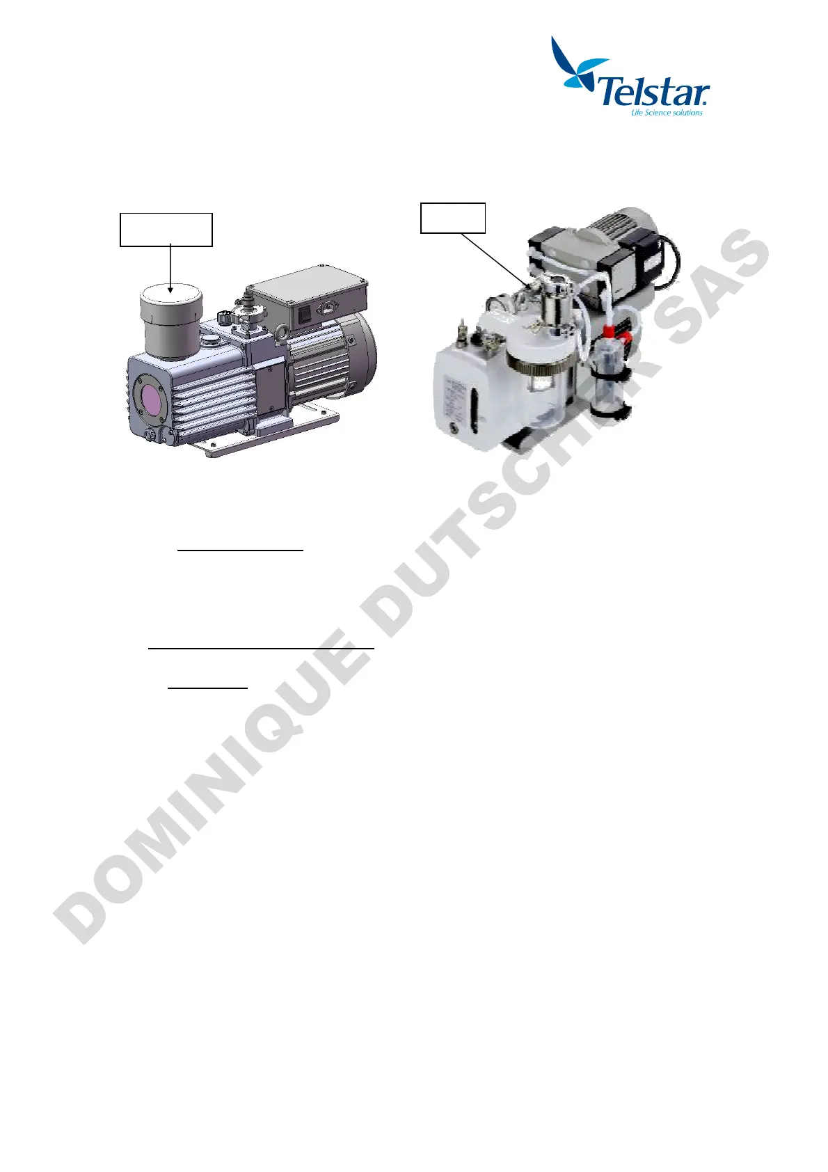 To direct the vapors outside of the pump, connect the pipe to vacuum pump exhaust,
