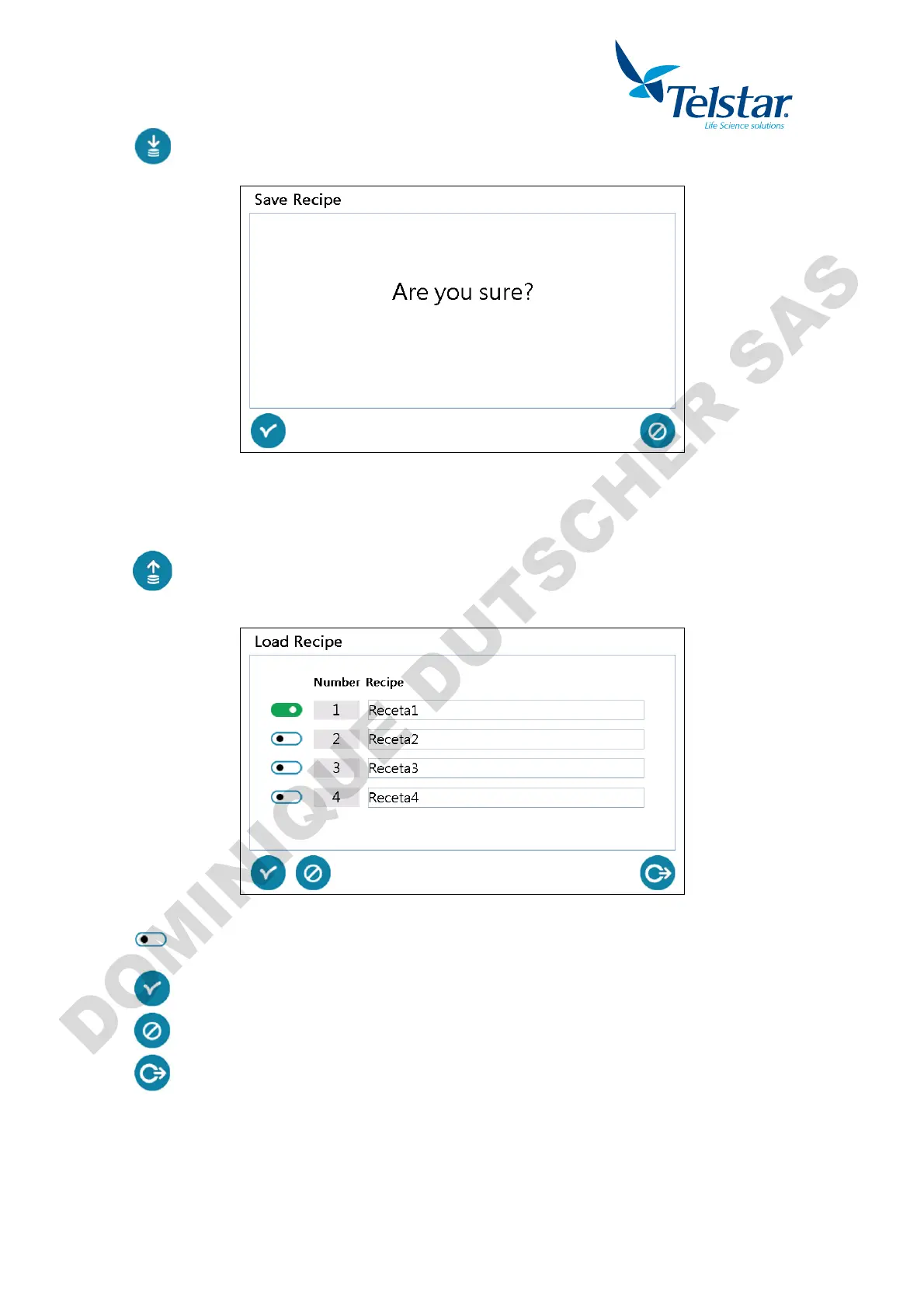 Load Recipe window in order to choose the recipe to be edited (4 possible recipes).
