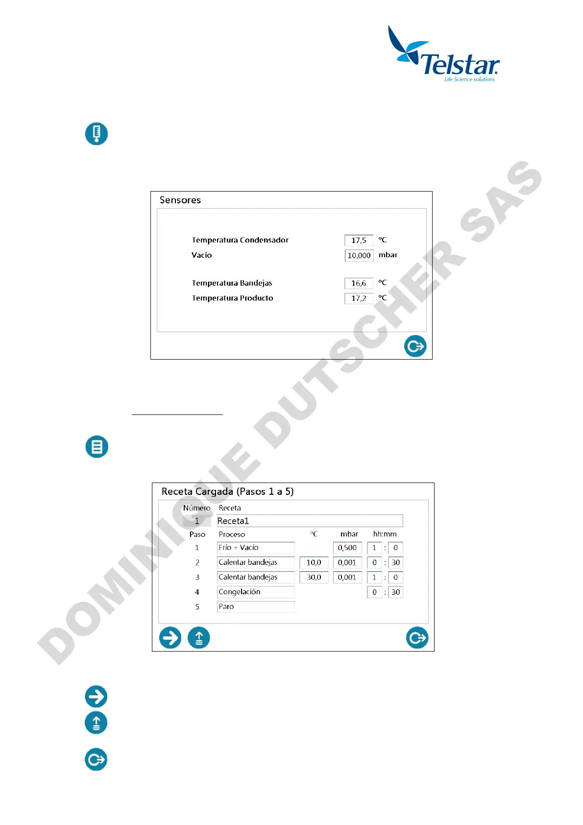 Telstar LyoQuest -85 Plus - Receta; Sensores