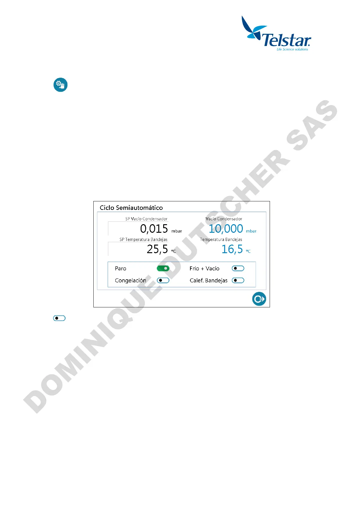 - Valores de consigna y en tiempo real de la temperatura de las bandejas y del vacío