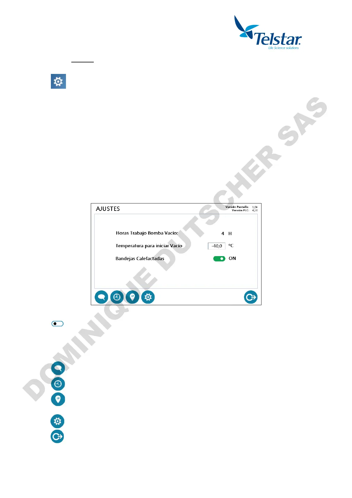 - Visualizar el tiempo que ha estado funcionando la bomba de vacío (horas).