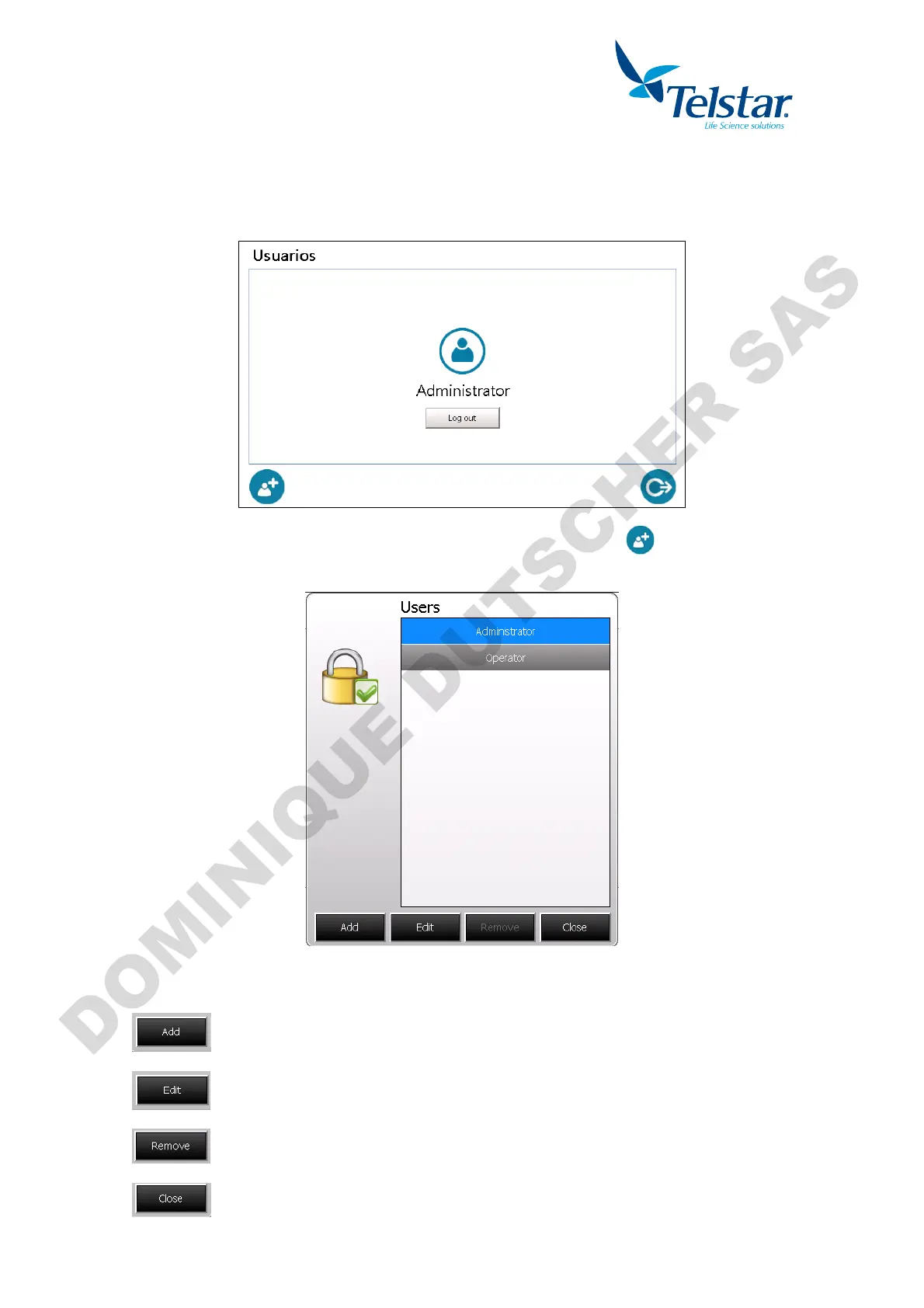 Para gestionar los usuarios del equipo habrá que logarse con un usuario con permisos de
