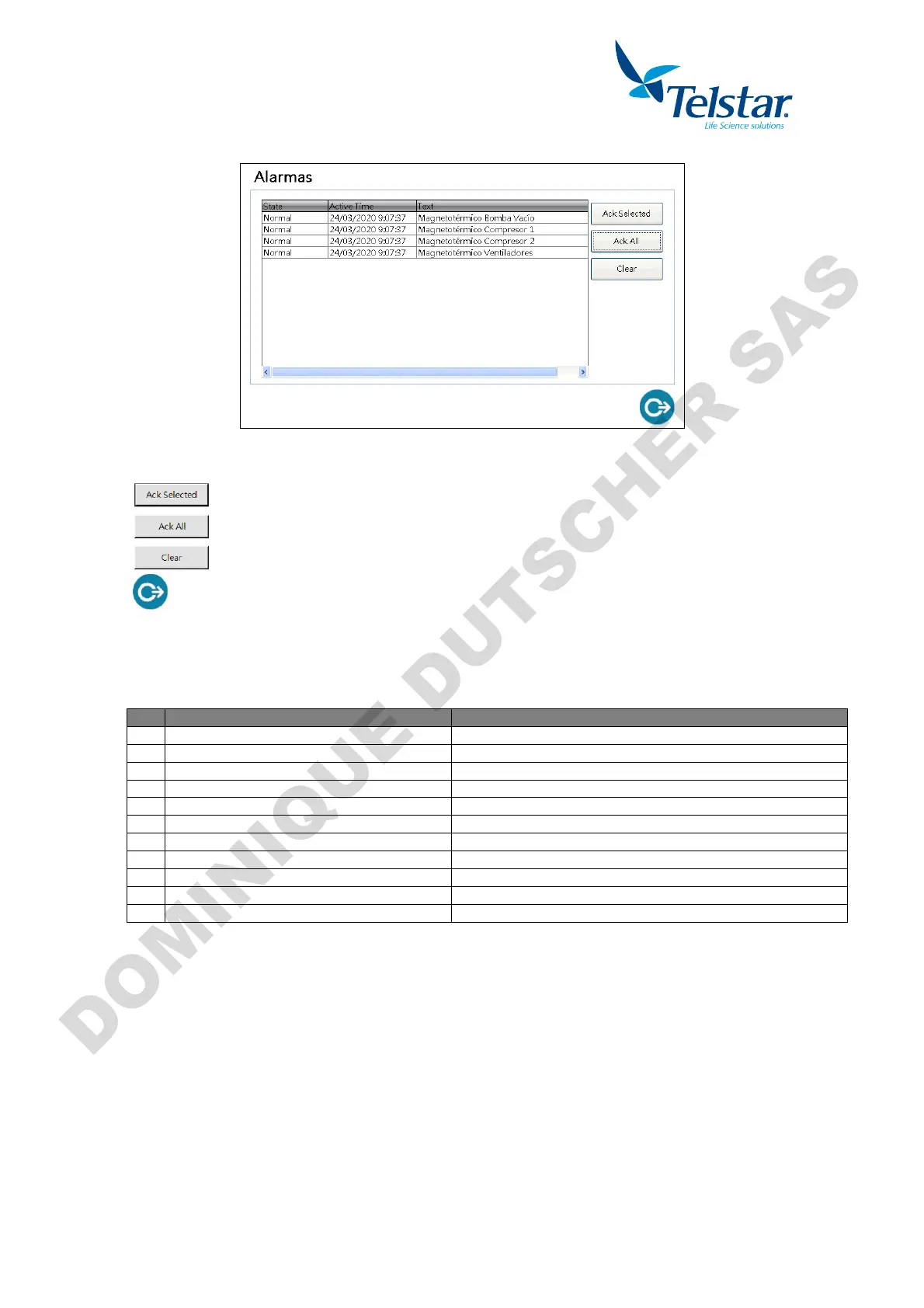 Borra todas las alarmas. Pero las alarmas activas seguirán apareciendo.