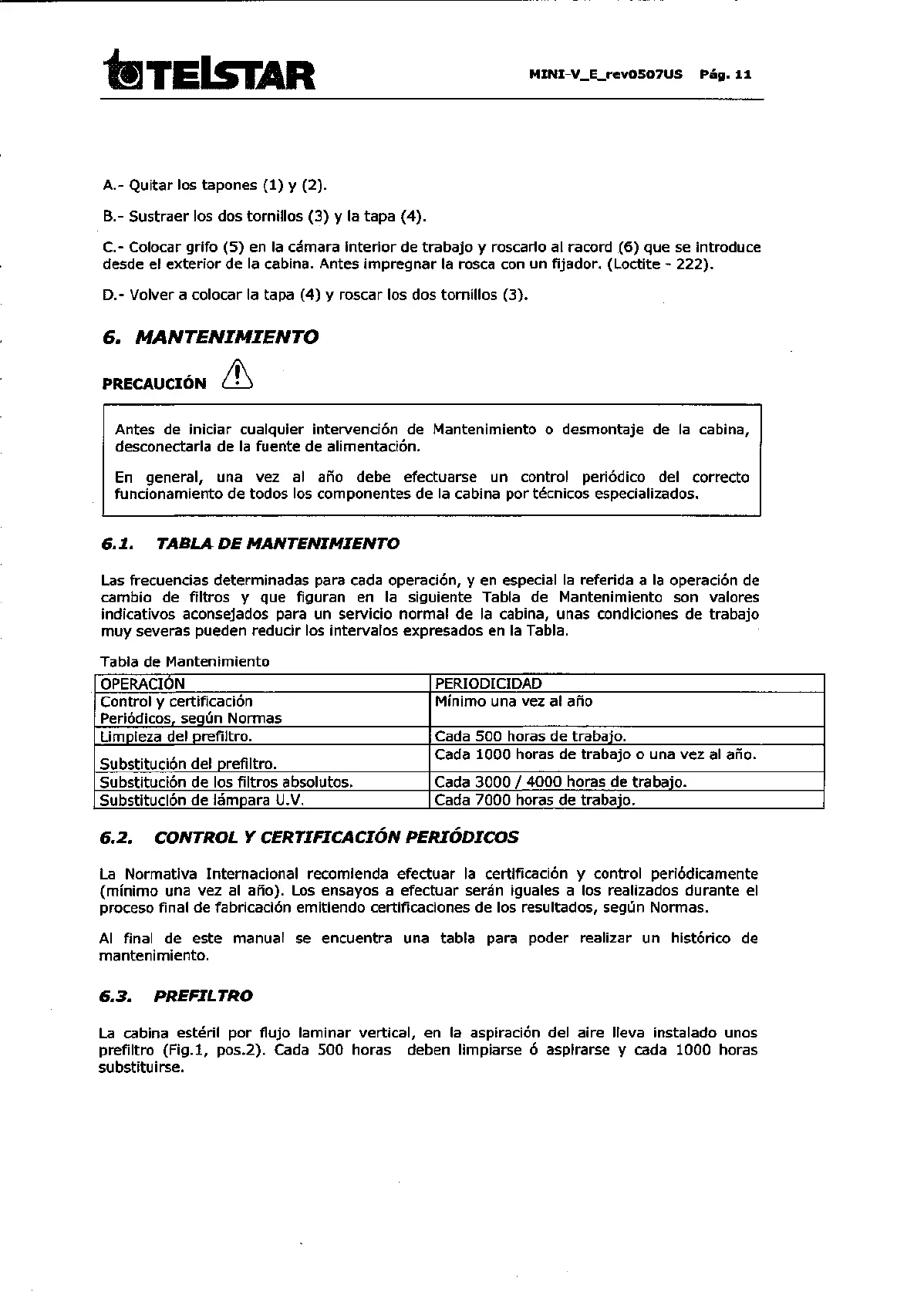 cambio de filtros y que figuran en la siguiente Tabla de Mantenimiento son valores