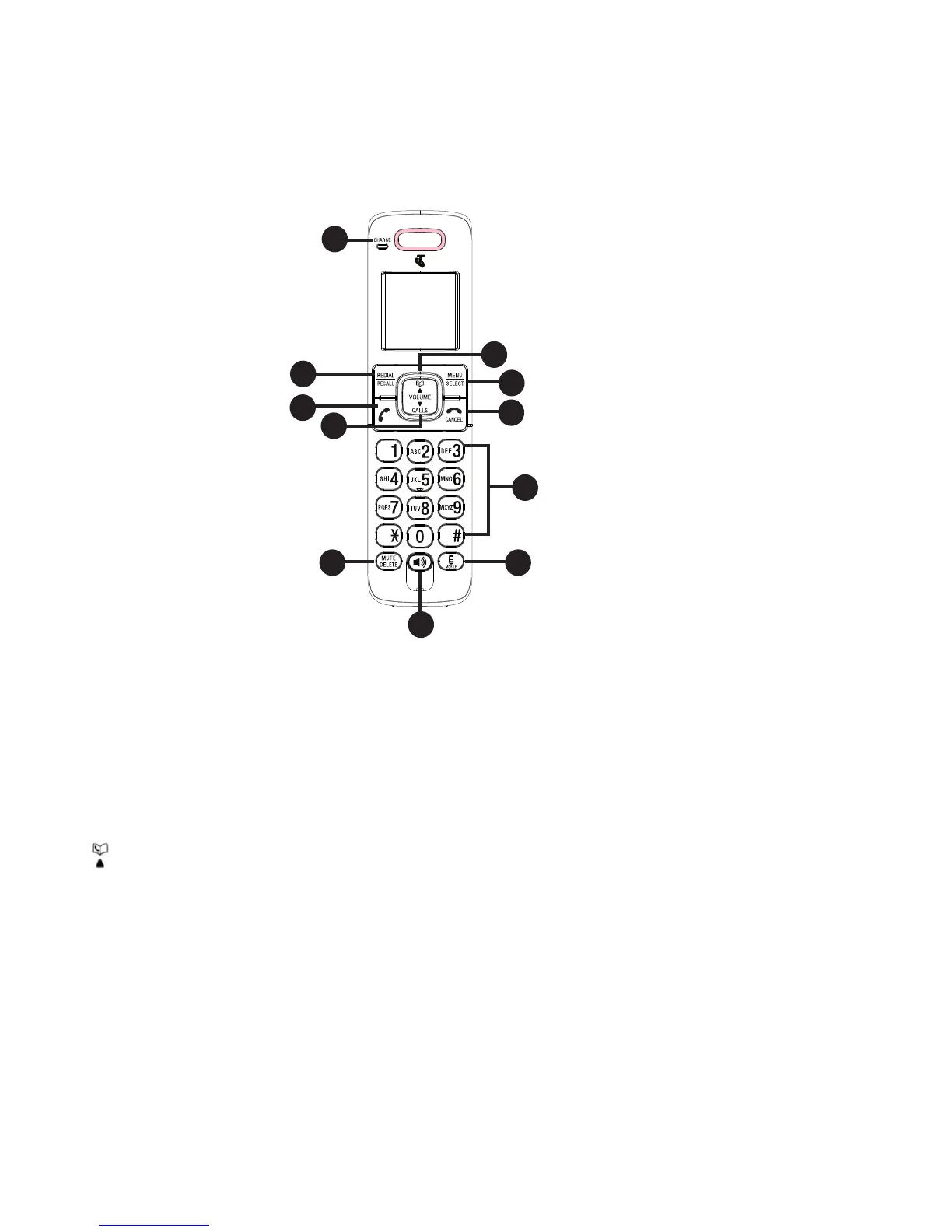 Press to scroll up while in a menu, or reviewing the phonebook, call list or