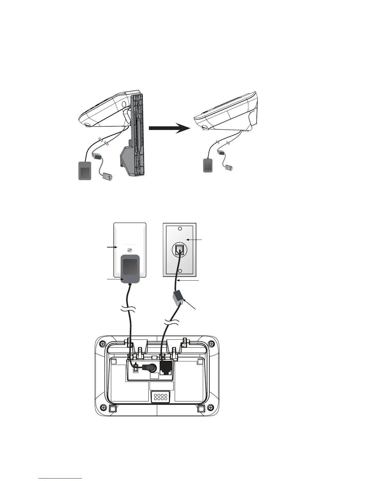 Untie the telephone line cord and power adaptor cord. Push the wall mount