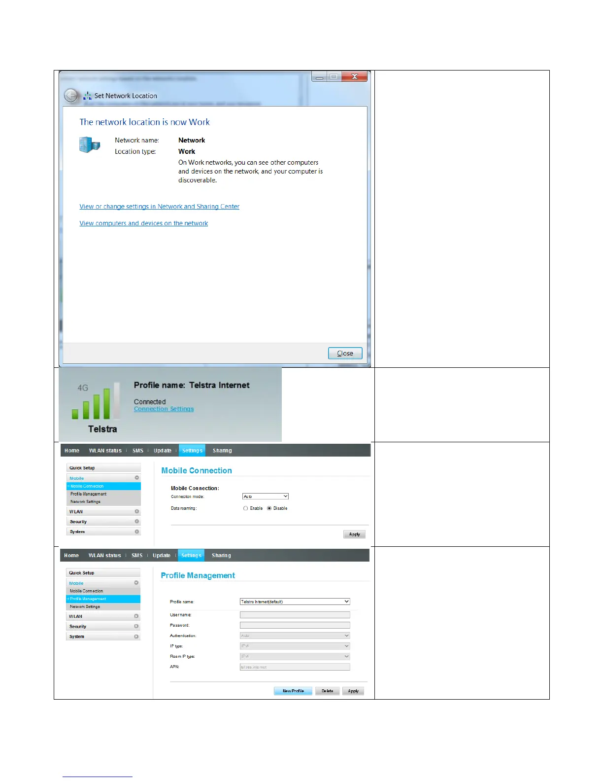 Telstra 4GX - Select Close; Select Connection Settings; Click on New Profile
