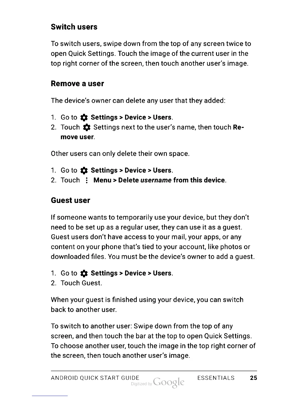 Telstra BUZZ - Switch Users; Remove a User; Guest User