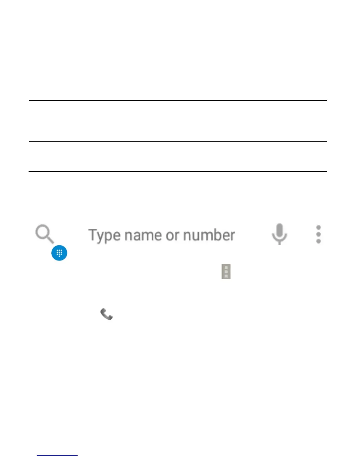 • Press for the Dial pad or tap Search, type a name or number, tap