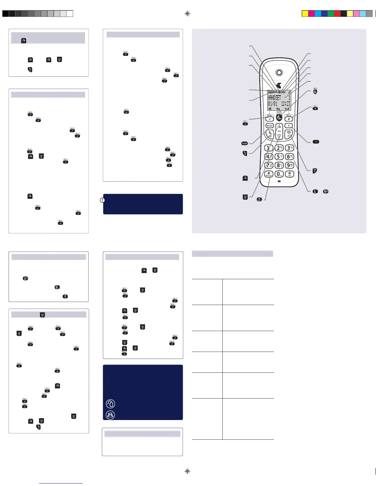 Handset buttons and display icons