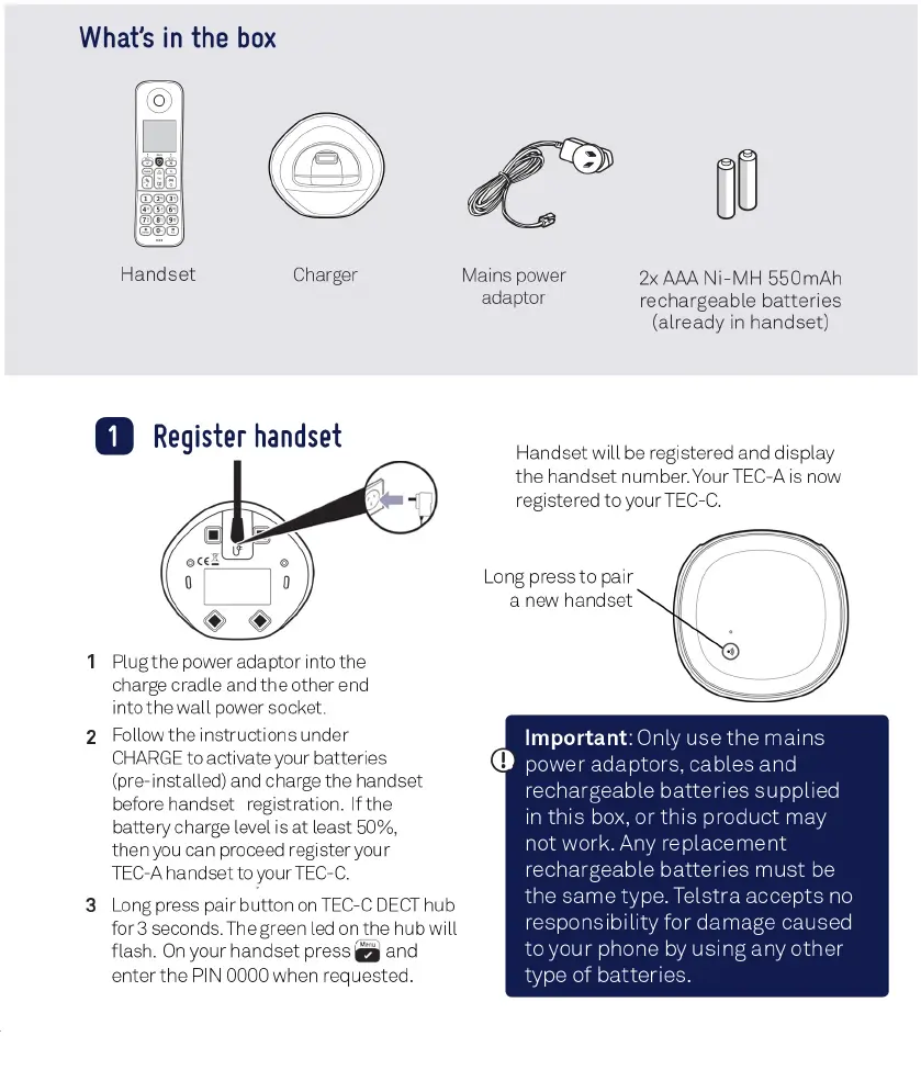 Handset will be registered and display