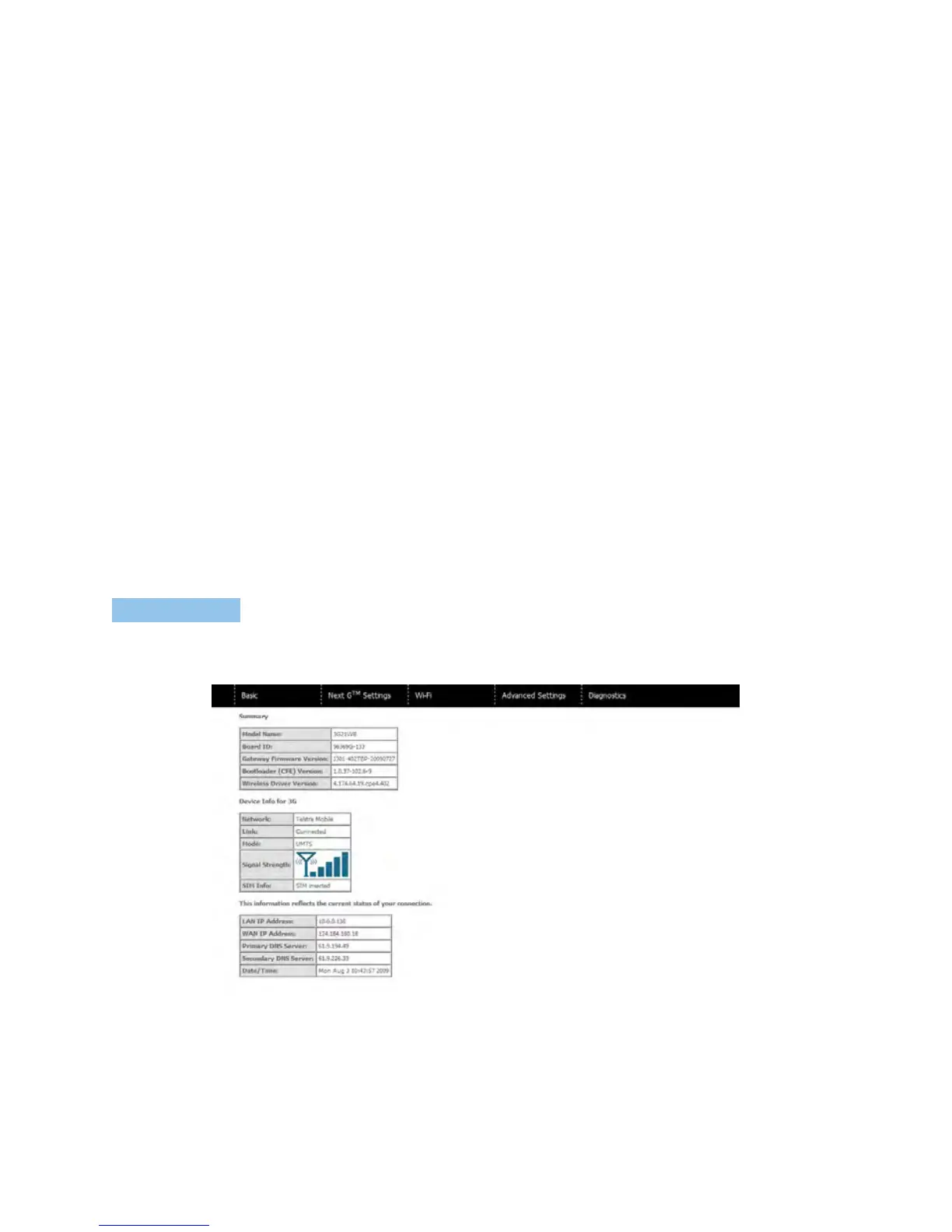 providesinformationregardingthefirmware,3G,andtheIPconfiguration.