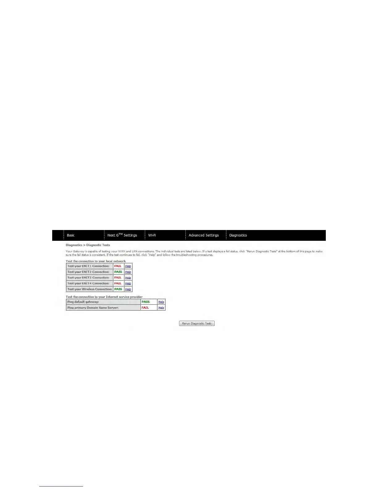 TheDiagnosticsmenuprovidesfeedbackontheconnectionstatusofthedevice.The