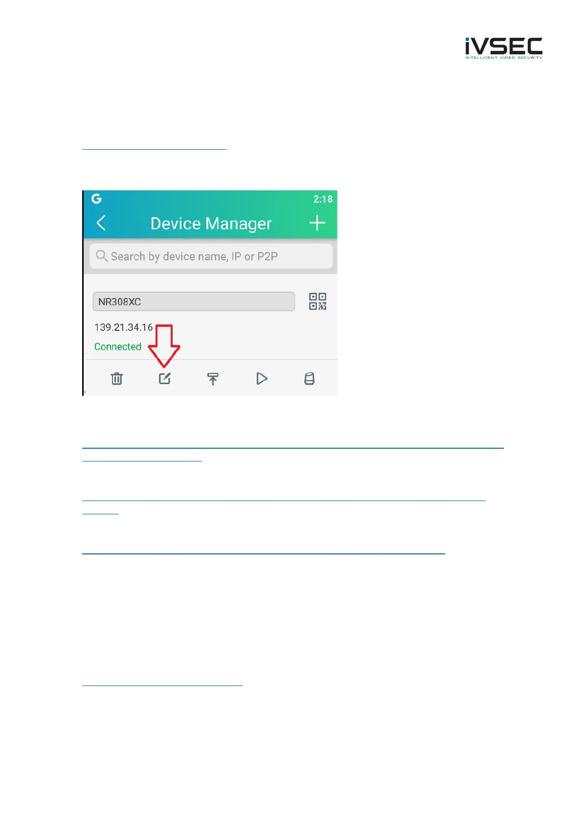IVSEC X app and press the edit icon as per image below to modify the IP address to the current