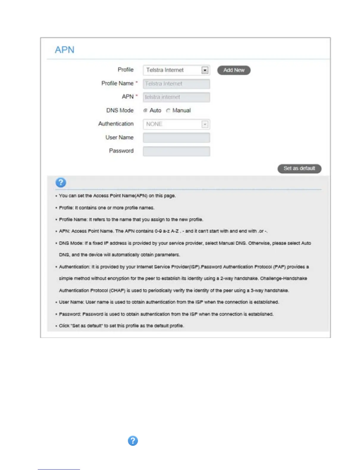 • Click on ‘Set as default’ to set the new APN as your preferred setting