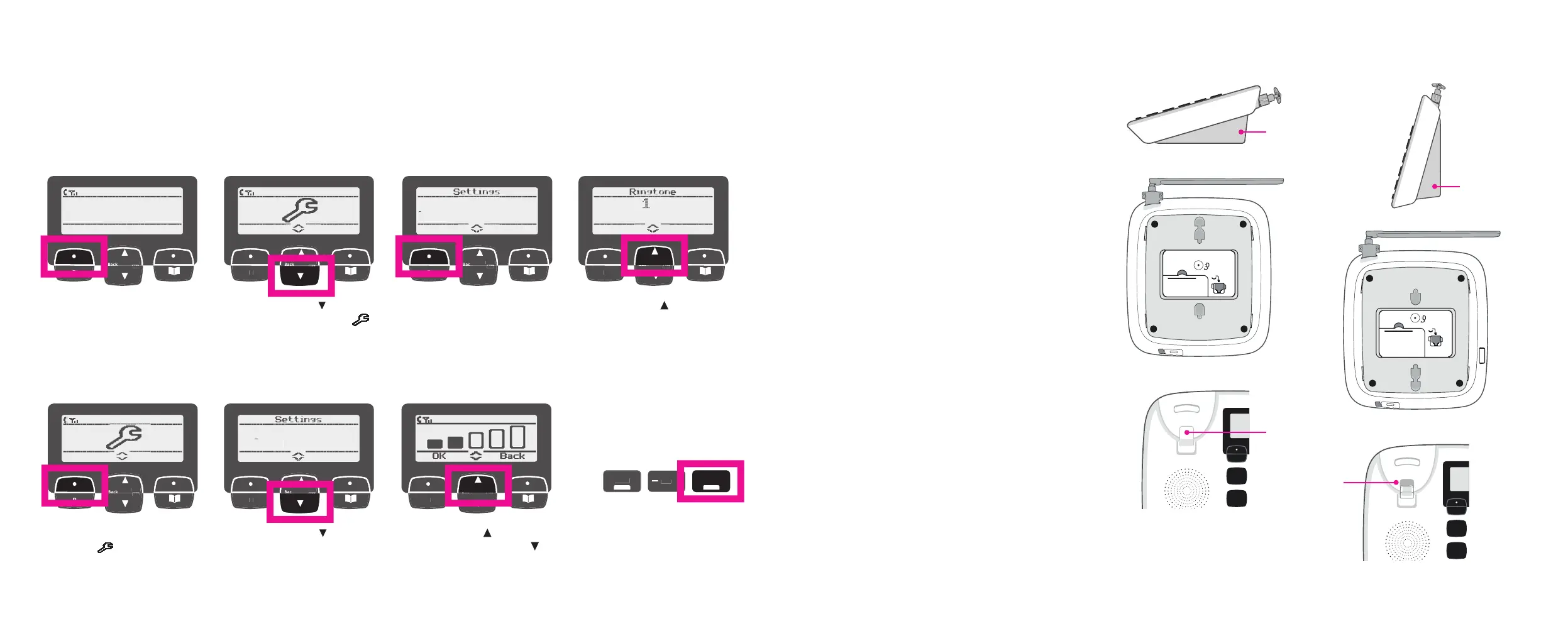 Navigate to the Settings menu to set ringer tone and volume as shown.