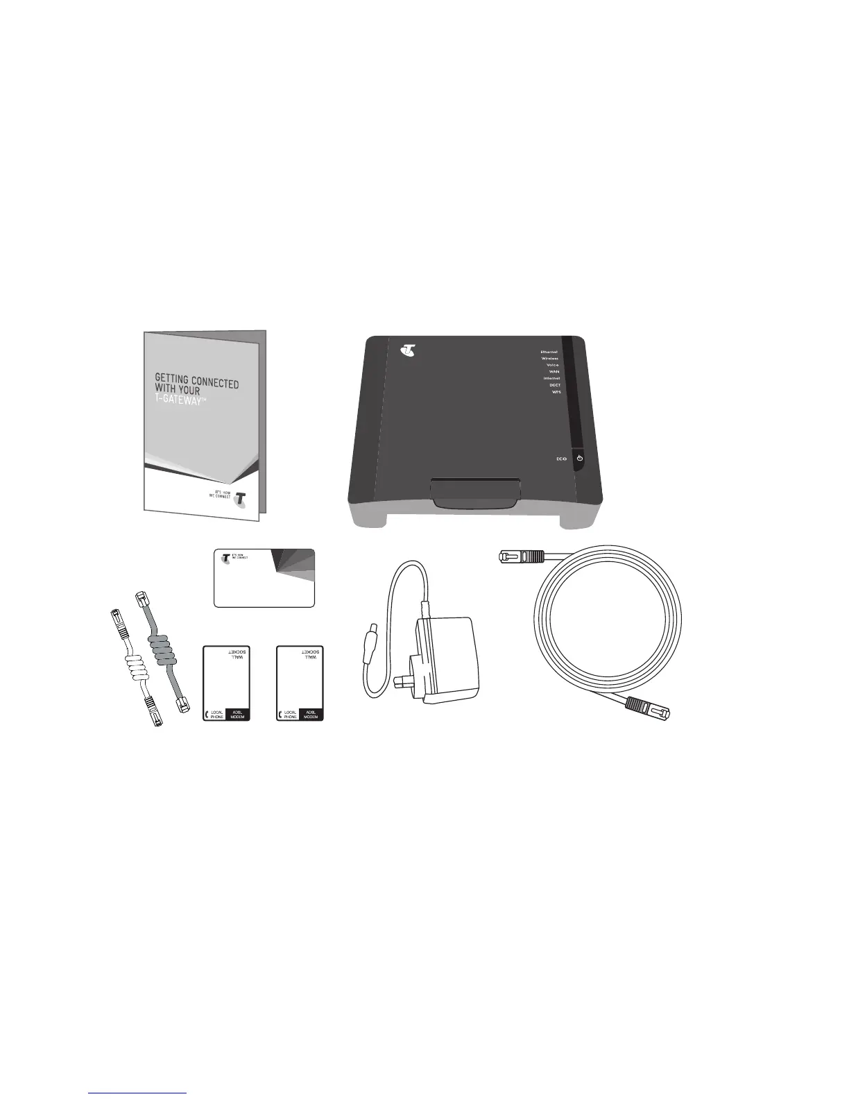 4. 2 x Telephone cables (T-Gateway), 2x Filter/splitters
