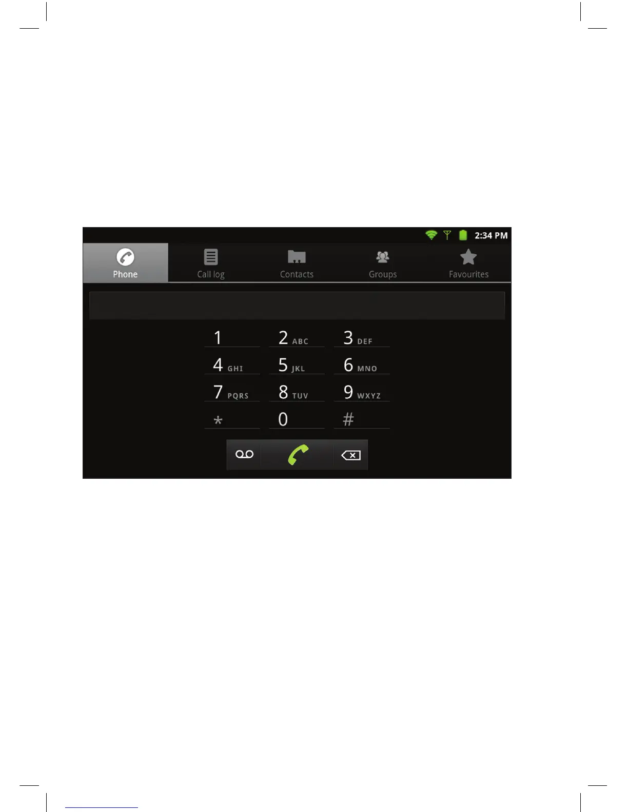 • Use the tabs along the top of the screen to access Call log, Contacts, Groups
