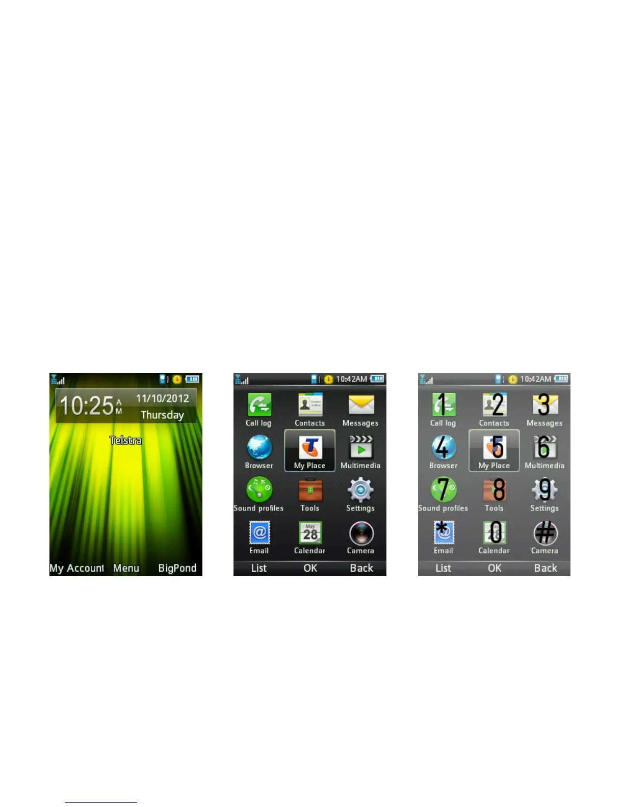 • You can view the menu as a List or Grid by pressing the left soft key.