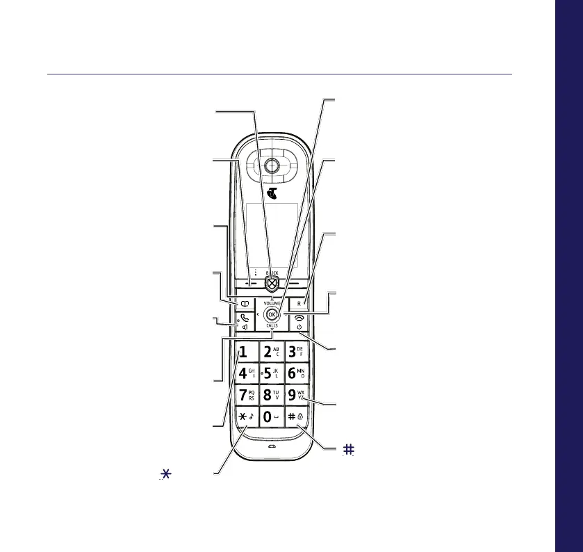 Press and hold to switch handset on/off.