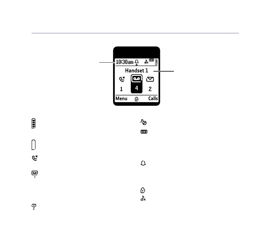 Shows handset battery status.