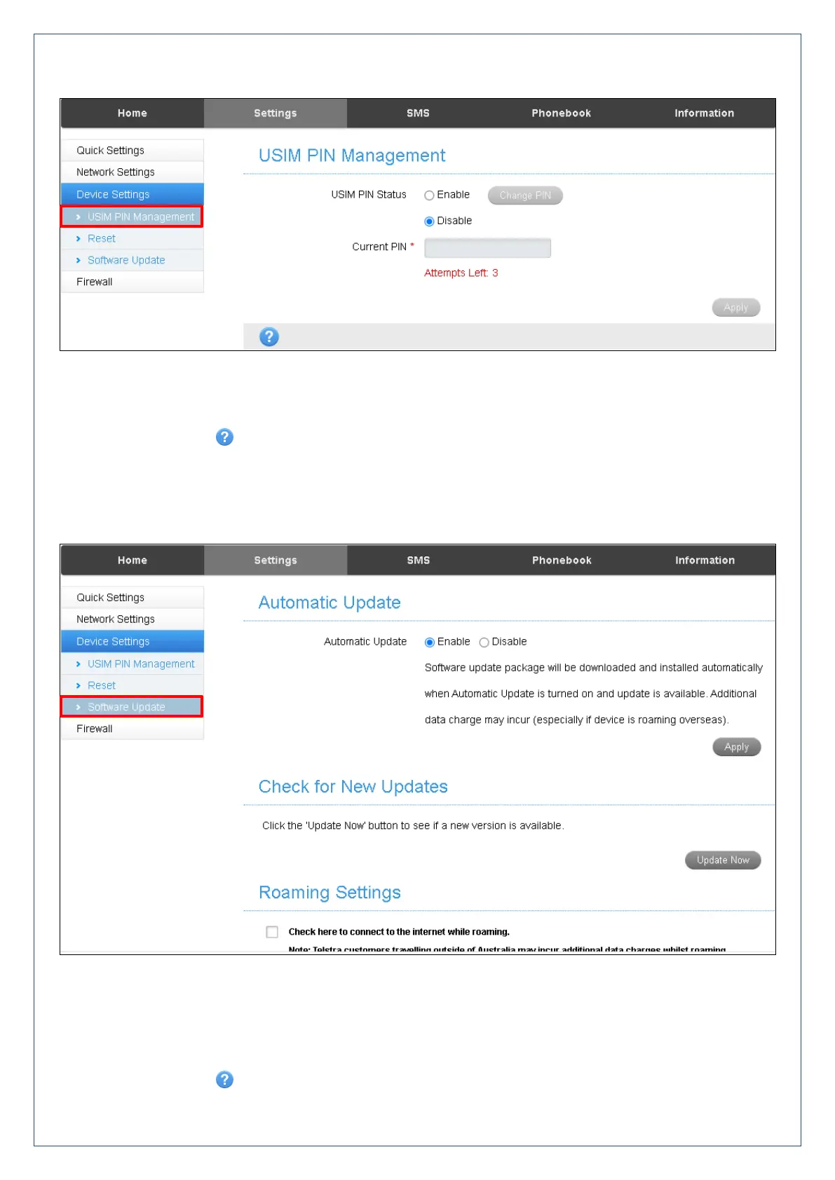 Settings > Device settings > USIM PIN Management