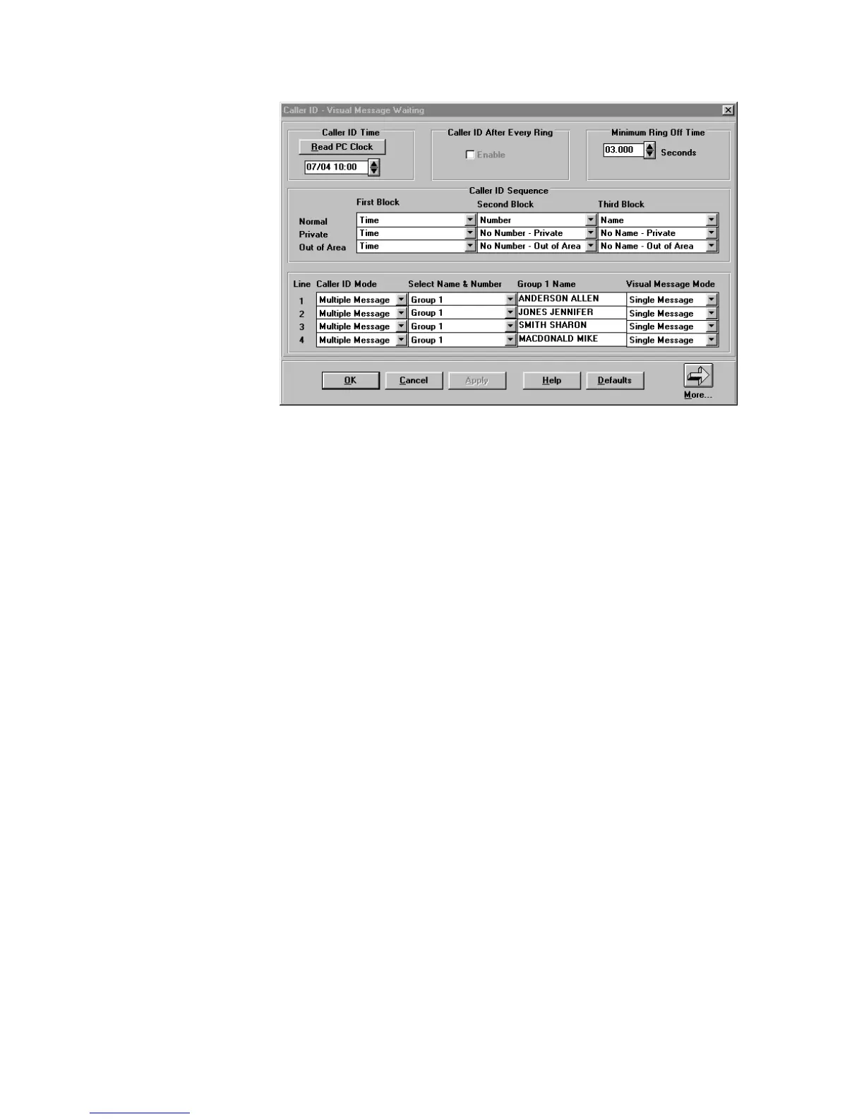 that is sent with each Caller ID block using the Multiple Message Format. This is useful to