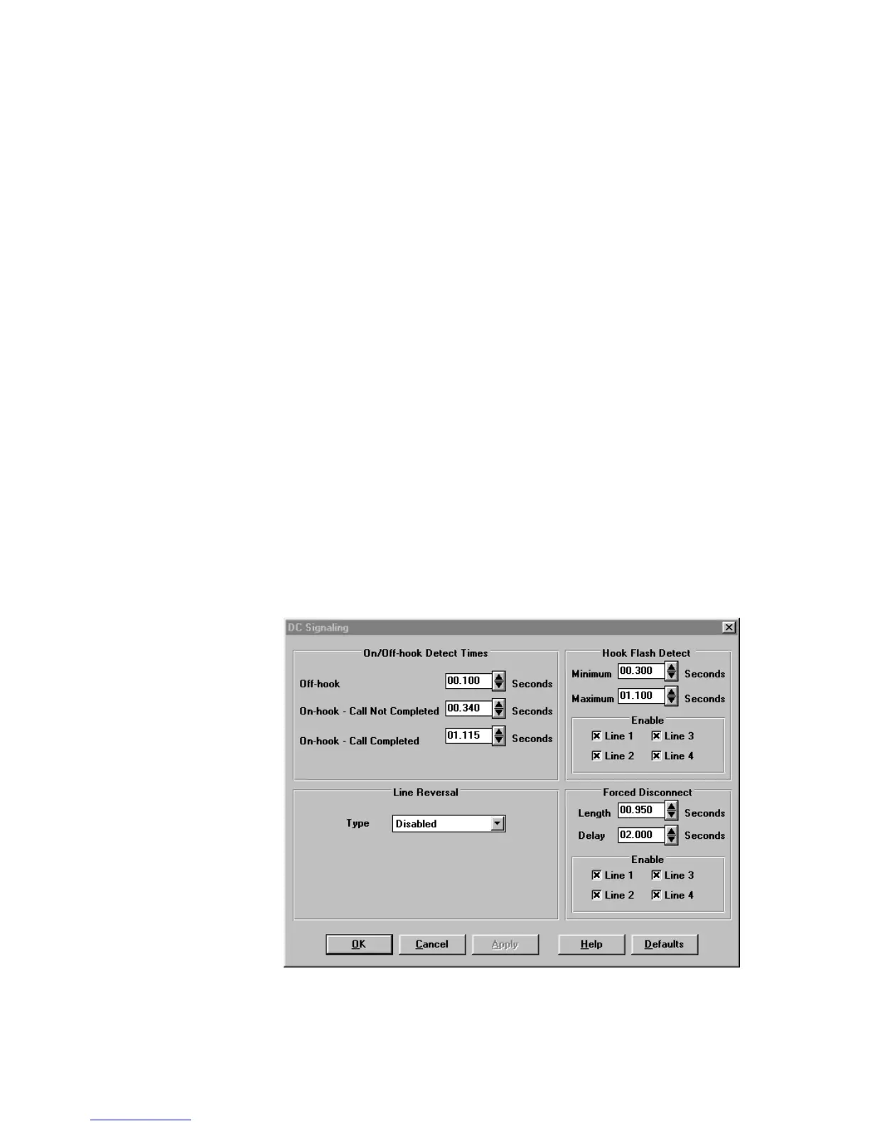 On/Off-Hook Detect Times, Hook Flash Detect Time, Line Reversal, and Forced